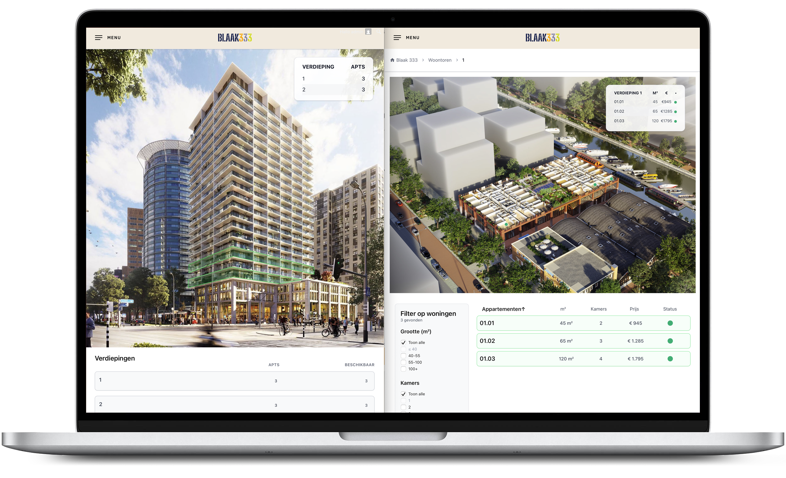 Intuïtieve interface ontwikkeld voor vastgoedprofessionals én toekomstige bewoners. Geen technische vaardigheden vereist - iedereen kan er direct mee werken!